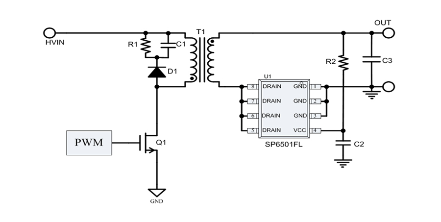 SP6501FL是一顆應(yīng)用于隔離反激電源系統(tǒng)的次級同步整流芯片。通過模擬次級肖特基整流二極管的工作并以極低的導(dǎo)通電阻來減小損耗。SP6501FL可以工作在斷續(xù)模式(DCM)和準諧振模式(QR)。使用先進的消隱技術(shù)使得芯片在各種工作模式下可以穩(wěn)定可靠地工作。